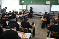 内容は「船中プライド」にある「地域の人たちに認められ、愛されているか」という項目から、ボランティアについての話でした。船木校区では学校運営協議会の皆さんの御尽力で、小学校からボランティア通帳を発行していただき、小中連携し校区一体となってボランティア活動に取り組んでいます。中学校では東日本震災への緑のバトン運動への取組から、はや10年以上の取組となっています。一人一人が良き伝統を引き継ぎ、更にこの活動を発展させてほしいです。機会があるごとに、多くの皆さんの参加をお願いします。
