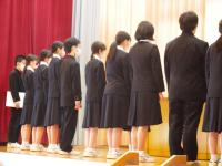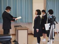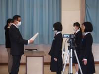 令和5年3月6日(月)1時間目に体育館で、これまで表彰伝達ができていなかった分を一気に行いました。県立高一般入試直前なので、全校生徒が集合する形式は取らず、リモートで行いました。