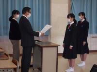 最後に、令和5年度生徒会テーマの発案者、デザインの発案者の2人に生徒会から表彰状が渡されました。後日、体育館西壁面に掲示される予定です。楽しみですね。